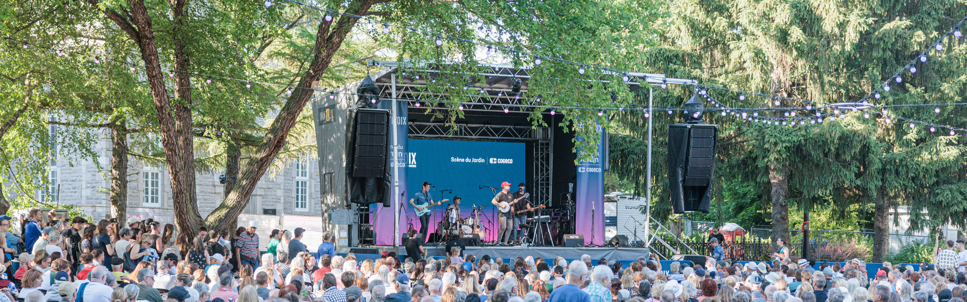 Entourée des bâtiments historiques du Vieux Trois-Rivières, à l’ombre de la chapelle du Jardin des Ursulines, la scène du jardin est le lieu idéal pour assister à des spectacles de plusieurs styles musicaux dans une ambiance intimiste au FestiVoix.